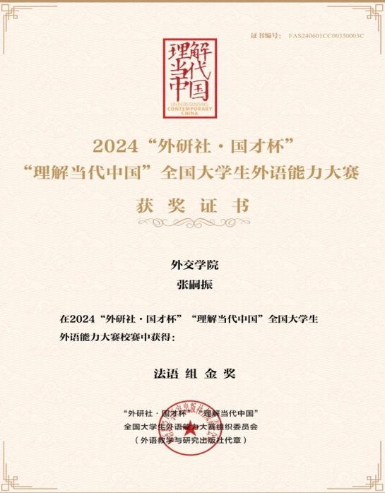 2024年9月8日、9月28日,2024“外研社·国才杯”“理解当代中国”全国大学生外语能力大赛法语组校赛在我院顺利举办。此次竞赛吸引了我院来自必一运动(Bsports)官方网站、外交学系、英语系的十余名同学报名参赛,经过激烈角逐,以下四位同学分获金、银、铜奖,获奖选手名单如下: