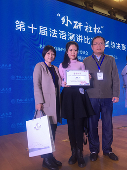 经过第一轮3分钟命题演讲(演讲题目:Réflexions sur l’esprit d’équipe)和第二轮3分钟即兴演讲,该同学与来自北京外国语大学、上海外国语大学、四川外国语大学、南京大学、首都师范大学等校的优秀选手展开了精彩激烈的角逐。大赛最后评出一等奖四名、二等奖四名、三等奖七名。