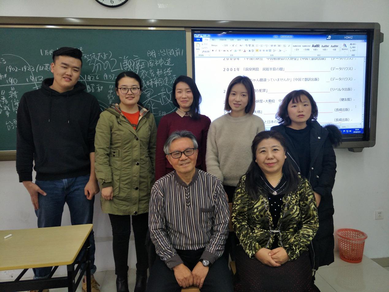 讨论完毕,本泽先生和日语师生亲切合影,这次的演讲完美落下帷幕。