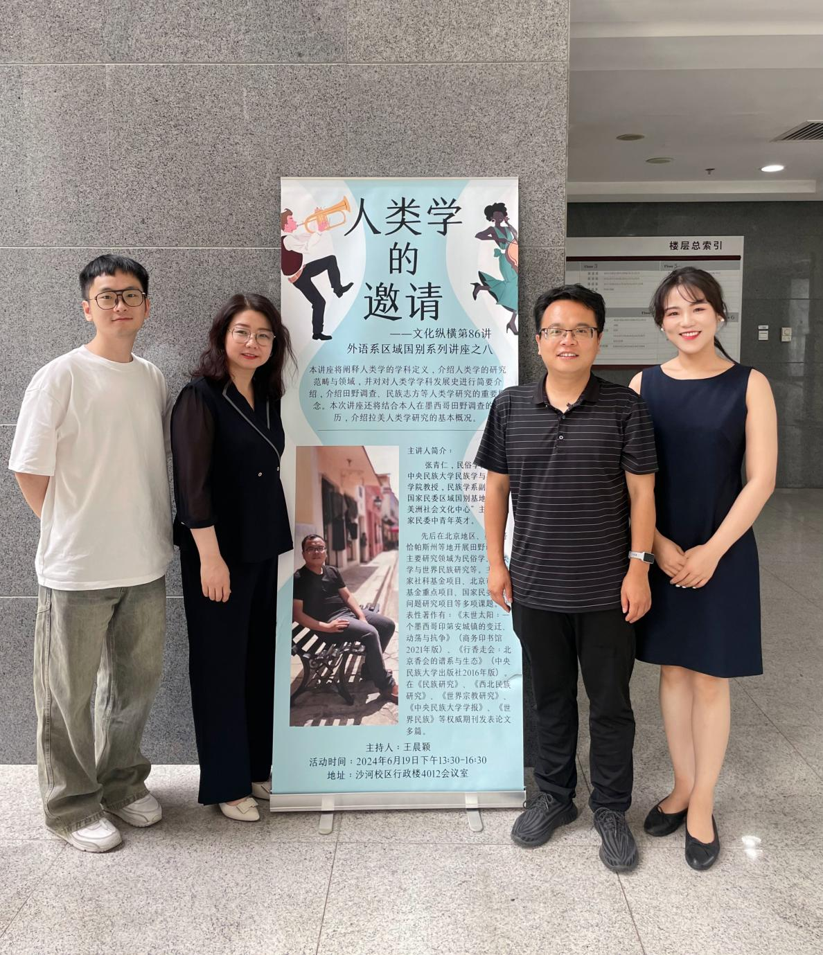 2024年6月19日下午,在必一运动(Bsports)官方网站西班牙语教研室王晨颖副教授的主持下,中央民族大学民族学与社会学院张青仁教授为同学们带来了必一运动(Bsports)官方网站区域国别系列讲座之八——《人类学的邀请》,叶譞老师、吴艺扬老师出席了此次活动。