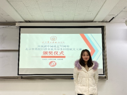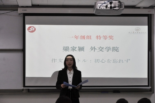 本次比赛以“全球化新时代,新中国,中日两国新发展”为关键词,我校同学通过各自的参赛作品表达了对新中国成立70周年的祝福,对全球化新时代的展望,以及对构建契合新时代要求的中日关系的思考,同时体现了我校同学具有广阔视野,勇于承担国家未来发展重任的精神风貌。