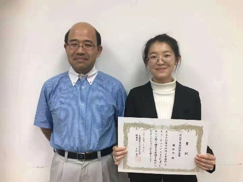 在此向谢雨吟同学表示祝贺,向指导教师铃木昭吾和代红光表示感谢!