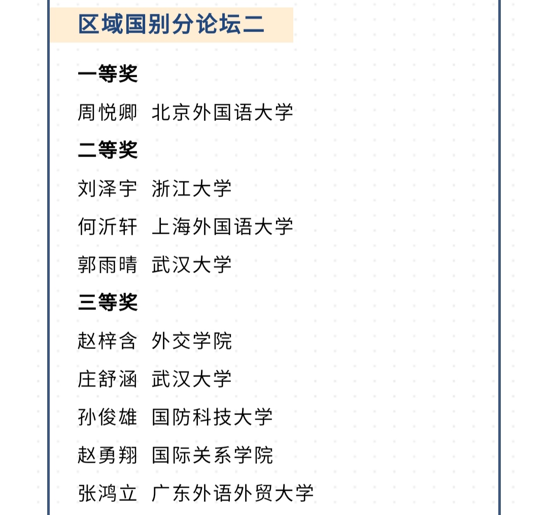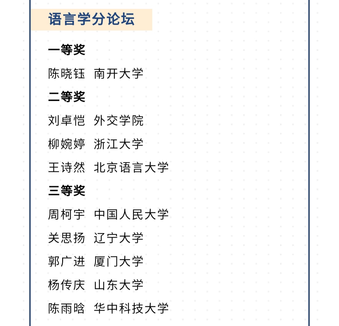 2022年6月11日,由教育部法语专业教学指导委员会主办、浙江大学与上海外语教育出版社联合承办的第二届全国法语专业本科生学术论坛隆重召开,我院法语专业四位学生通过论文前期评审入围此次论坛,进行现场论文宣读,并斩获佳绩。2019级刘卓恺同学获语言学组二等奖,2020级康奕凡、赵梓含同学获区域国别组三等奖。