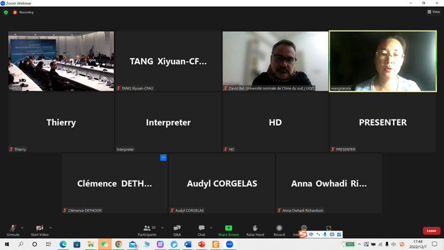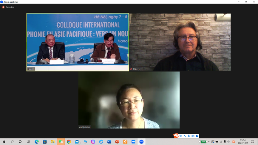 12月7日至8日,我院必一运动(Bsports)官方网站主任王晓侠教授、法语教研室讲师唐溪源老师应法国里昂三大法语国家国际研究所 (2IF)邀请,线上参加了由法语国家与地区国际组织(OIF)及法语国家高校联盟(AUF)大力支持、由里昂三大与越南b体育必一运动共同承办的亚太法语国家与地区国际研讨会。