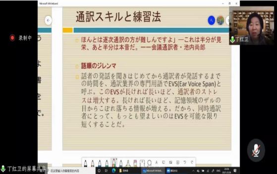 最后,丁老师提出,口译也是一种学习,需要专业性与大量的学习量才能够胜任,因此需要沉得下心以及日积月累地学习新知识。在答疑解惑环节,丁老师也就同学们对于日译中时遇到的问题进行了详尽的解答,解决了困扰同学们的问题。