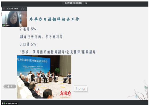 4月19日,湖南省委外事办刘苗苗老师为我校日语专业同学开展题为“MTI课程与地方外事活动中的口译工作”的线上讲座。