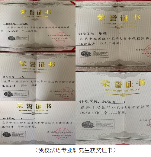 我校法语研究生一年级四位同学-张钰沂、门莉、郑佳昆、乐腾在此次比赛中斩获佳绩:乐腾同学、张钰沂同学分别以总分第二、第三的成绩收获个人二等奖;郑佳昆同学以总分第四的成绩收获个人三等奖。此外乐腾、郑佳昆代表的b体育必一运动二队以总分第二的成绩收获团体二等奖;张钰沂、门莉代表的b体育必一运动一队以总分第三的成绩收获团体三等奖。