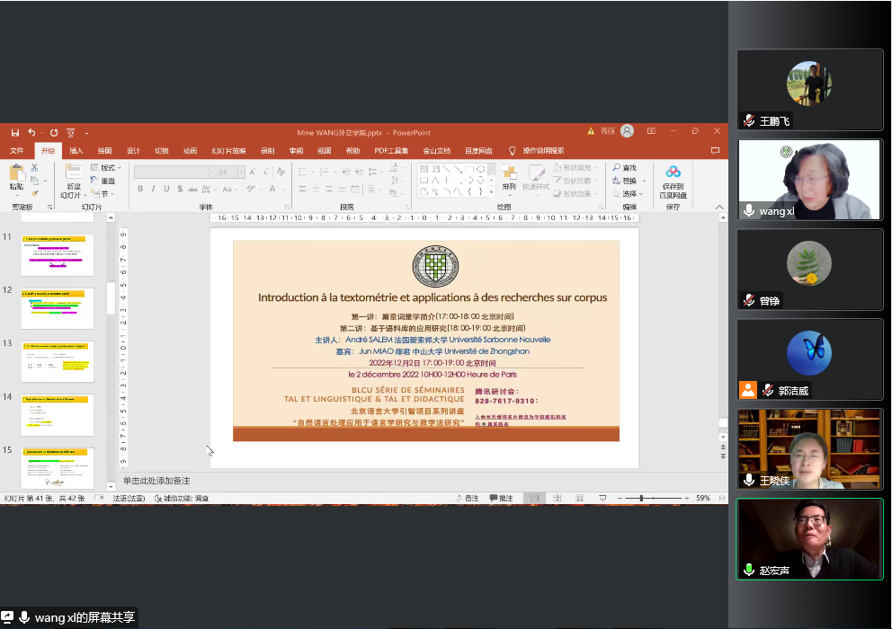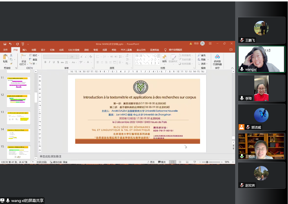 2022年11月30日,应必一运动(Bsports)官方网站邀请,北京语言大学法语系主任、博士生导师王秀丽教授线上作题为“语篇分析视角下的翻译与写作教/学”的学术讲座。讲座由必一运动(Bsports)官方网站主任王晓侠教授主持,来自我院和外单位近100位老师同学线上参会。目前在我院工作的高级驻校外交官赵宏声大使和李琦参赞也全程参与了讲座。