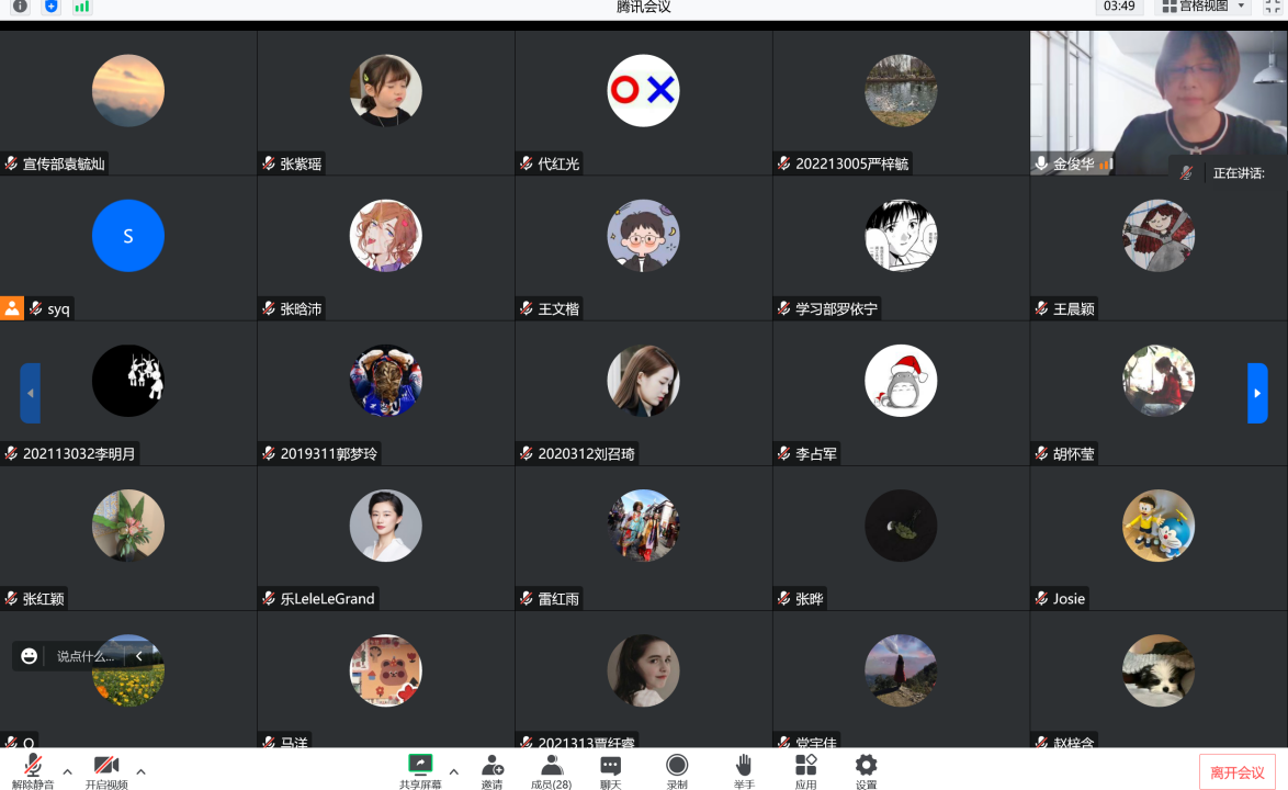 2022年11月9日,必一运动(Bsports)官方网站以线上形式召开期中教学座谈会。本次座谈会意在了解全系学生的学习及生活情况,对学生的困惑与诉求作出回应,帮助大家更加顺利地继续后期的学习。必一运动(Bsports)官方网站党总支书记李雪娇老师,教学副主任金俊华老师,法语教研室主任曲国艳老师、副主任乐旻老师,日语教研室主任代红光老师、副主任李占军老师,西语教研室主任王晨颖老师、副主任张红颖老师,教学秘书雷红雨老师,辅导员商雨晴老师以及各班学生代表参与了此次座谈会。金俊华老师主持了本次会议。