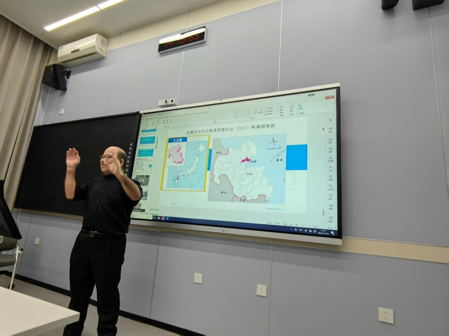 讲座中,铃木昭吾先生以日本战后新农村开拓为核心切入点,结合自身家乡——大分县日出镇藤原地区阵辻村的具体实践案例,对该主题的历史渊源与发展现状展开独到且深刻的剖析。他以亲身采访调研的一手资料为支撑,辅以大量生动详实的图片素材,进行了细致入微的讲解,使同学们仿佛身临其境,直观感受了该村的发展变迁历程。