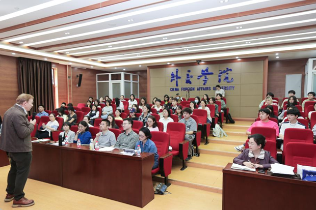 讲座伊始,王晓侠教授向大家介绍了戴维力先生在中国三十年来从事官方文献翻译工作的经历。戴维力先生因此获得“中国政府友谊奖”,可以说是讲好中国故事,传播中国声音的经典翻译实践的典范。王老师对讲座内容作了引入。讲座中,戴维力结合其多年从事党和国家重要文献及领导人重要论述外译及改稿的实例与心得,全面而深入地分享了自己对解析语言差异性的翻译技巧的理解,并从中文文本国际传播的角度出发,多维度梳理了中文文献外译时需要考虑的几个因素,从词汇的对应,句法的解构与重组,到逻辑的建立,情感的抒发和意图的呈现以及译文在受众群体中的接受程度等一一做了细致入微的探析和讲述。