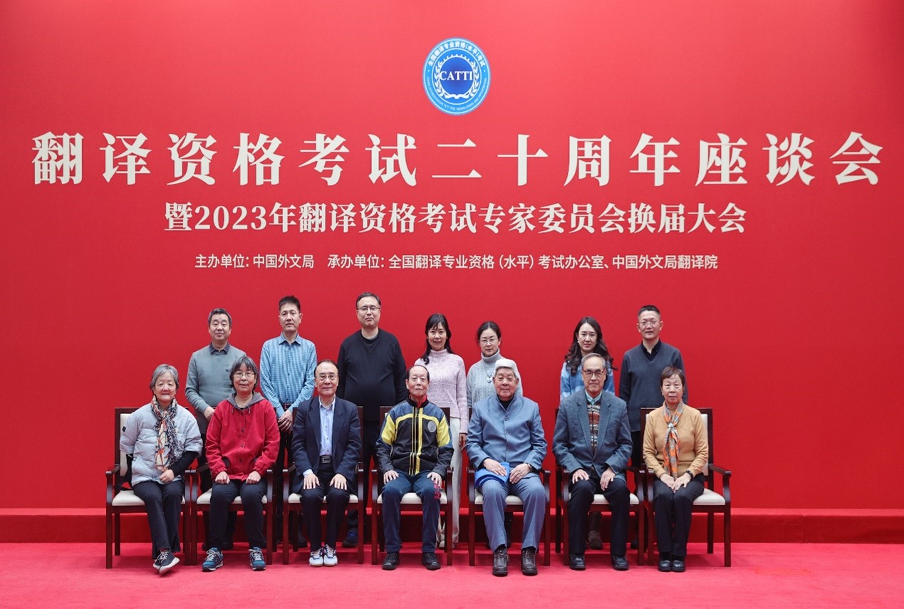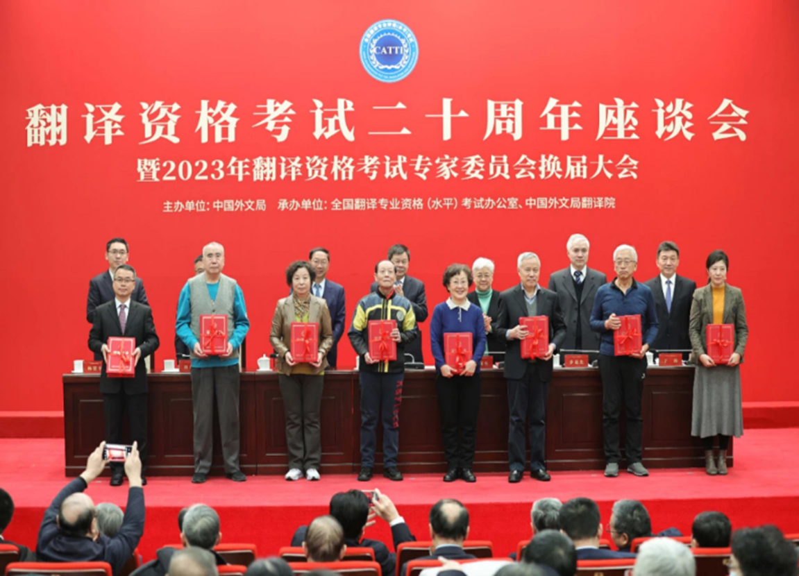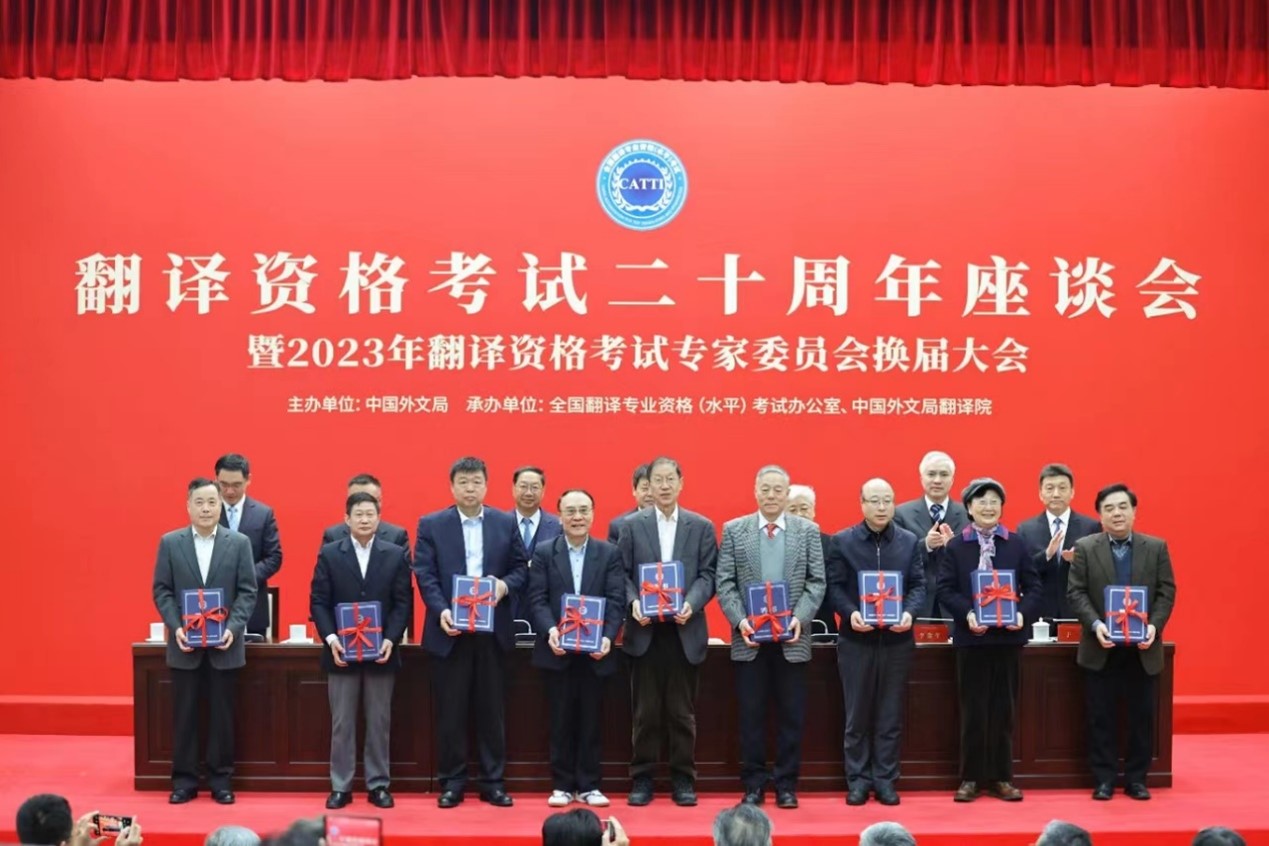 2023年12月15日,全国翻译专业资格(水平)考试二十周年座谈会暨2023年翻译资格考试专家委员会换届大会在京召开。中国外文局局长、中国翻译协会会长杜占元,中国外文局副局长、翻译资格考试领导小组组长刘大为,中国外文局副局长、翻译资格考试领导小组副组长于涛,人力资源社会保障部专业技术人员管理司司长李金生出席会议。中国外文局人事部主任、翻译资格考试领导小组成员兼考试办公室主任杨建平主持会议。人力资源社会保障部、外文局有关负责同志以及翻译资格考试考务机构、专家和考生代表等200余人参会。