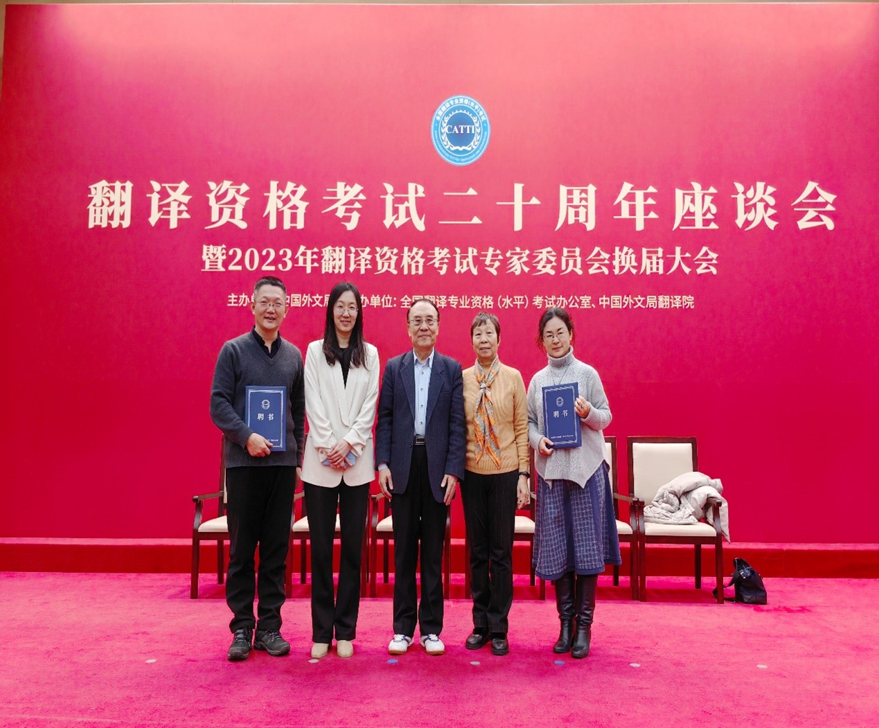 中国外文局翻译院鉴于我院必一运动(Bsports)官方网站主任王晓侠教授在法语专业翻译界的学术成就和声誉,邀请其加入全国翻译专业资格(水平)考试法语专家委员会并参加全国翻译专业资格(水平)考试二十周年座谈会暨2023年翻译资格考试专家委员会换届大会。王晓侠教授于会上受聘为全国翻译专业资格(水平)考试新一届专家委员会委员。