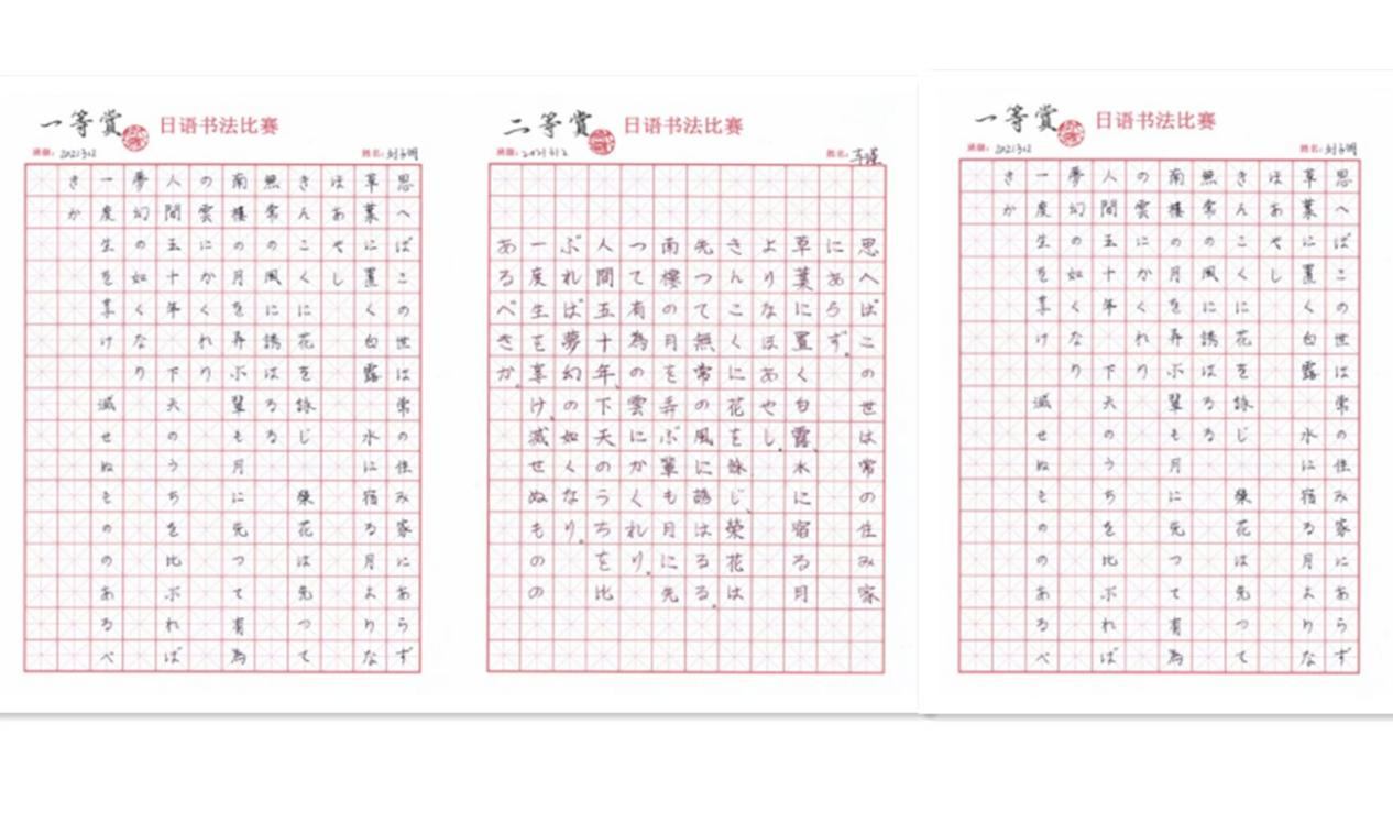 同学们用心撰写的作品难分伯仲,特别是在法语专业的书法大赛中,更是出现了平票的情况,在评委老师们的热烈讨论下,采取了外教老师提出的鼓励在书法比赛中有所创新突破的同学的观点,最终将布局谋篇有特色、字体有创新的作品评为了一等奖。这也体现了必一运动(Bsports)官方网站在培养大国特色外交外语人才的过程中秉持着鼓励学生突破自我、争创佳绩的教学理念。