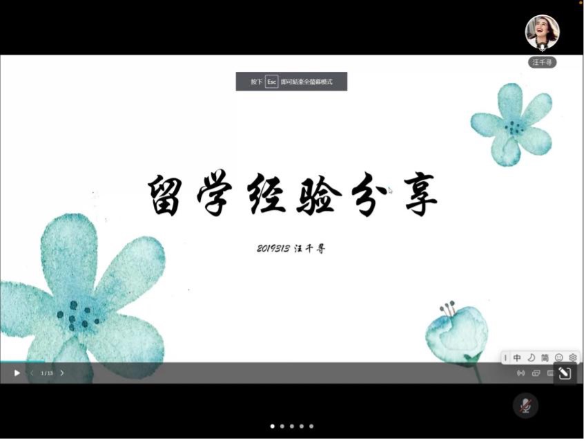 2018级日语专业的關穎茵同学介绍了中日学习的不同,给予了同学们学分转换,选课方面的建议。同时她也提示同学们可以咨询留日的同学了解相关课程的信息。在学习方面,關穎茵同学对日本留学进行了详细的介绍并给出了论文准备的建议。