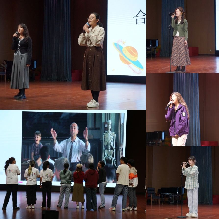 在同学们的热切期盼下,晚会拉开帷幕。孙雅轩同学带来的独唱《野人》,不断提醒着我们在忙碌的生活节奏中,停下脚步,聆听内心的声音,找回那些被遗忘的美好;凌超婷同学以天籁般的嗓音,用一首《Printemps noir》触动了同学们的心灵,让心灵在欣赏春天的同时,也能从中汲取到面对黑暗时所需的勇气与信念;罗佳妮同学带来的独唱《Shouldn't Couldn't Wouldn't》,以独具风格的曲调,凭三个简洁而深刻的词汇,鼓励我们接受过去,珍惜当下,面向未来;黄烁棠和夏楚璇两位同学带来的合唱《sincerely》阐释了爱与被爱的意义。