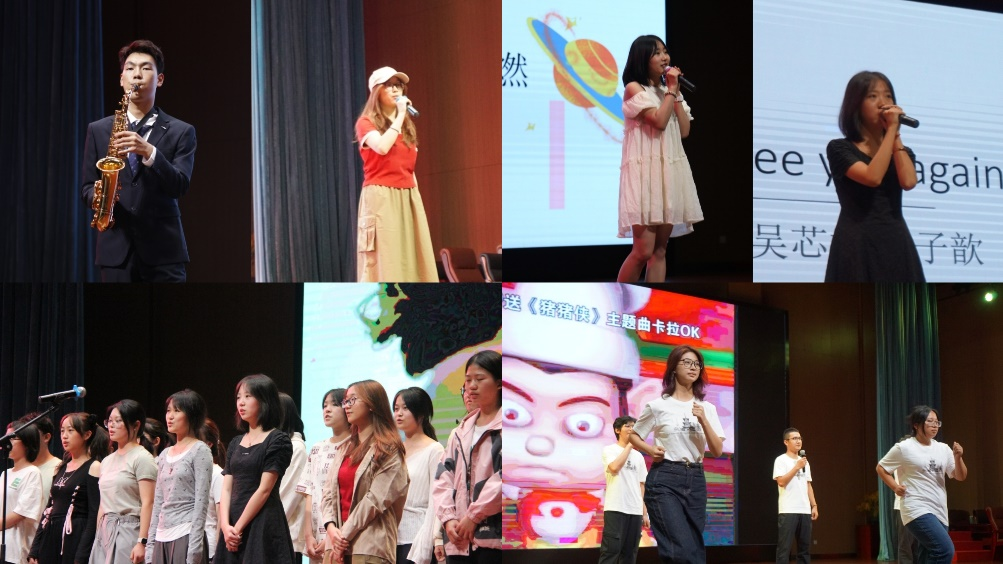 紧接着的是李奕燃同学带来的独唱《心墙》,表达着幸福必将打破那悲伤心墙,让爱重新流淌;顾百松同学带来的萨克斯独奏《我心永恒》,萨克斯风的柔美音色,将这首歌的深情与哀愁完美地呈现出来,让人沉醉其中,无法自拔;吴芯研与郭子歆同学唱响《see you again》,“我们曾一起走过那些日子,如今只能在梦里相见”这句歌词充满遗憾不舍,但那些曾经陪伴我们的人,永远不会真正离开。将对童年无限的追忆藏在心中,2024级日语班全体同学带来的《童年经典歌曲串烧》将同学们的思绪拉回十几年前的夏天,尽情感受童年馈赠的珍宝;最后2024级法语班的全体同学带来合唱《Love Story》,歌词传递的不仅是对年轻爱情的称颂,更是对梦想和坚持的赞美。