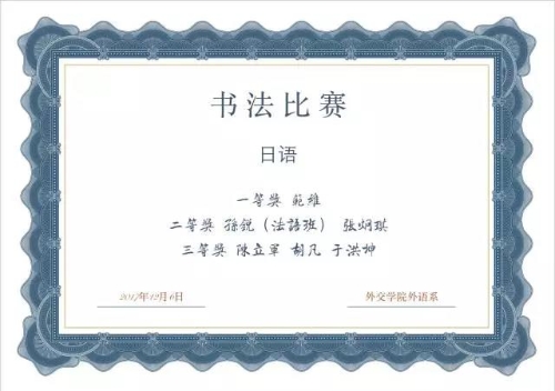 朗诵比赛在具体落实上,采取不同语种,不同赛场的方式,请来各教研室的老师们担任评委,法语赛场邀请李旦主任、金俊华老师、曲国艳老师、候琦斌老师、外教Jonathan老师担任评委;日语赛场邀请代红光老师、李占军老师、铃木昭吾老师担任评委;西语赛场邀请姜曙老师、王晨颖老师和叶譞老师担任评委。书法比赛采用场外完成,教研室统一评审的方式进行。