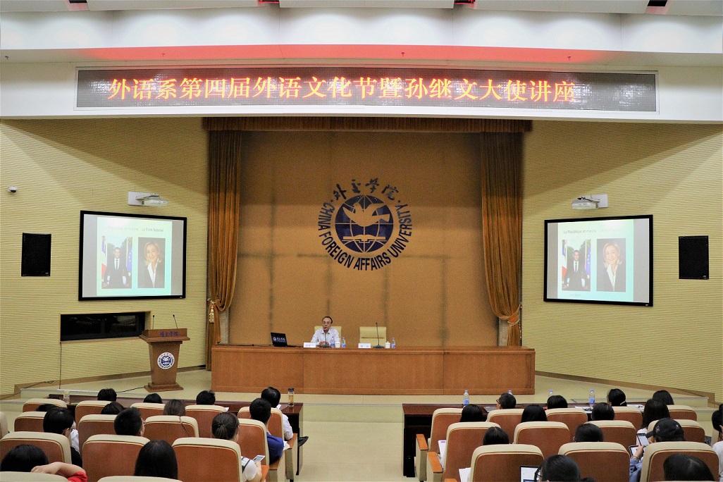 在提问环节,同学们向大使提出了关于外语翻译学习、法国的相关热点时事,以及大使驻外过程中的体会感受等相关问题,大使用风趣幽默的语言,为大家分享驻外过程中的一些暖心细节,交流对法国时局的看法,并指出外语学习需要持之以恒地训练,大家均表示收获颇丰。
