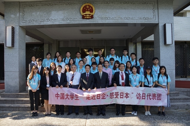 在访问即将结束之际,同学们来到了中国驻日本大使馆,在那里同学们在中国驻日本大使馆参赞律桂军的介绍下回顾了中日交往的历史以及现阶段所面临的问题,我院大三学生范伯阳代表大家发言,对访日之行做了总结与回顾。