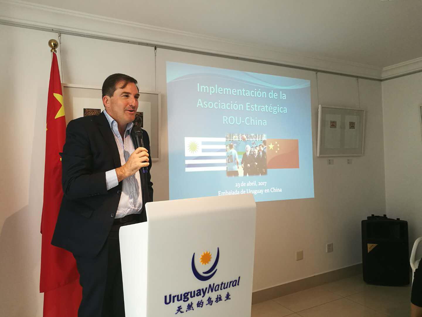 热情洋溢的费尔南多大使先生首先介绍了乌拉圭国情及乌中关系发展历程。1988年乌中建交,今年适逢两国建交30周年。
