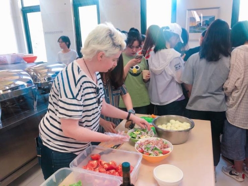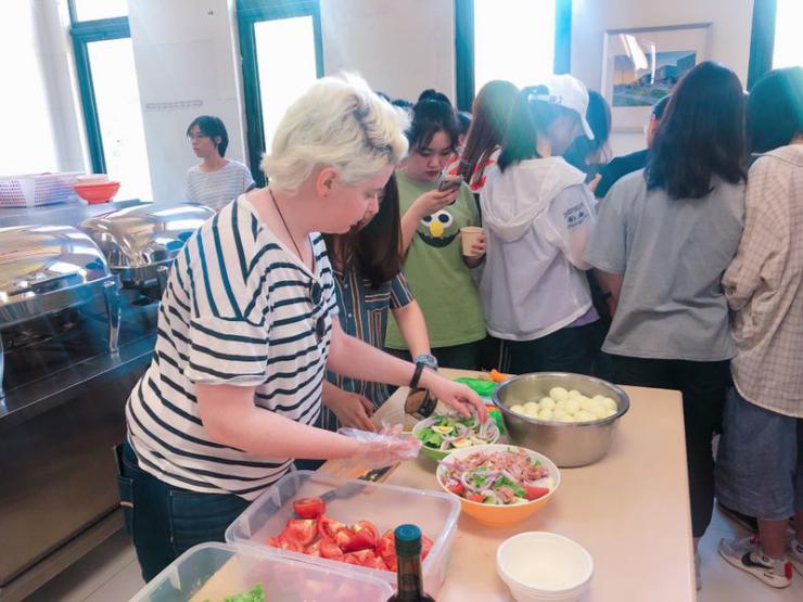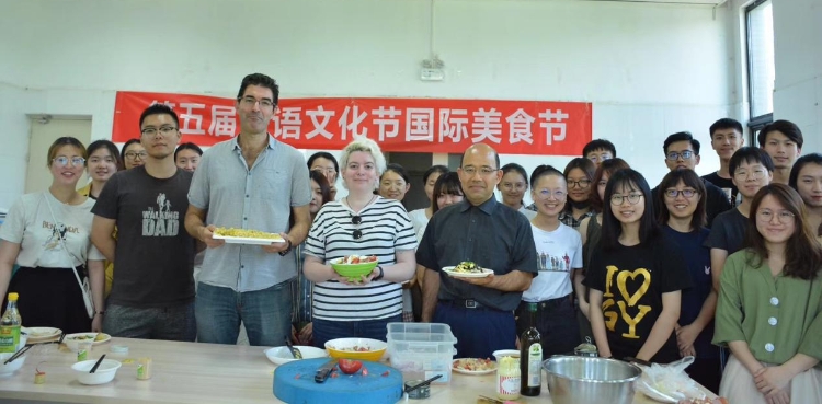 在这次的美食节中,大家不仅学会了如何制作这三道美食,更是通过美食进一步了解了各国文化。在活动结束时,同学们依依不舍地围着外教交流,与外教合影留念,留下美食节最温馨的回忆。