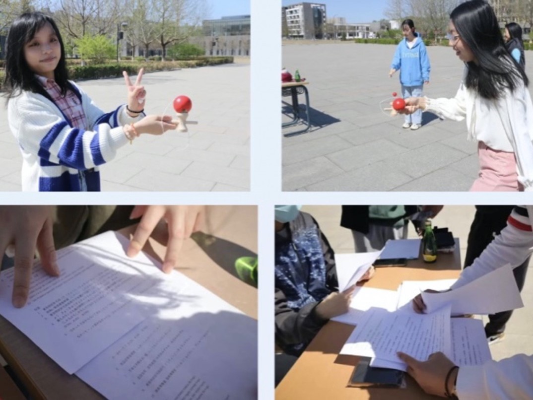 三国文娱闯关摊位也吸引了不少同学的目光:传统的日本民间游戏——剑玉,可谓是让大家又爱又恨,欲罢不能,只要拿起它,不挑战成功绝不放弃。涵盖着多领域、不同主题的知识问答挑战摊位前同样也人潮涌动,一问一答中 大家都展示出了对于外国文化常识的深厚积累。