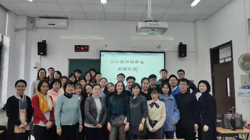 法语组朗诵比赛在沙河208教室进行。系主任王晓侠老师、系教学副主任金俊华老师、法语教研室副主任曲国艳老师、刘碧霞老师、于蓓老师、张怡老师、乐旻老师、王鹏飞老师、李芮老师、外教Caroline出席并担任评委。来自2020311班的参赛选手分别诵读了22篇法语经典和美文。比赛中,各位选手精神饱满、落落大方,用抑扬顿挫的语调演绎了一篇篇经典美文。精彩流畅的诵读博得了在场师生的阵阵掌声。