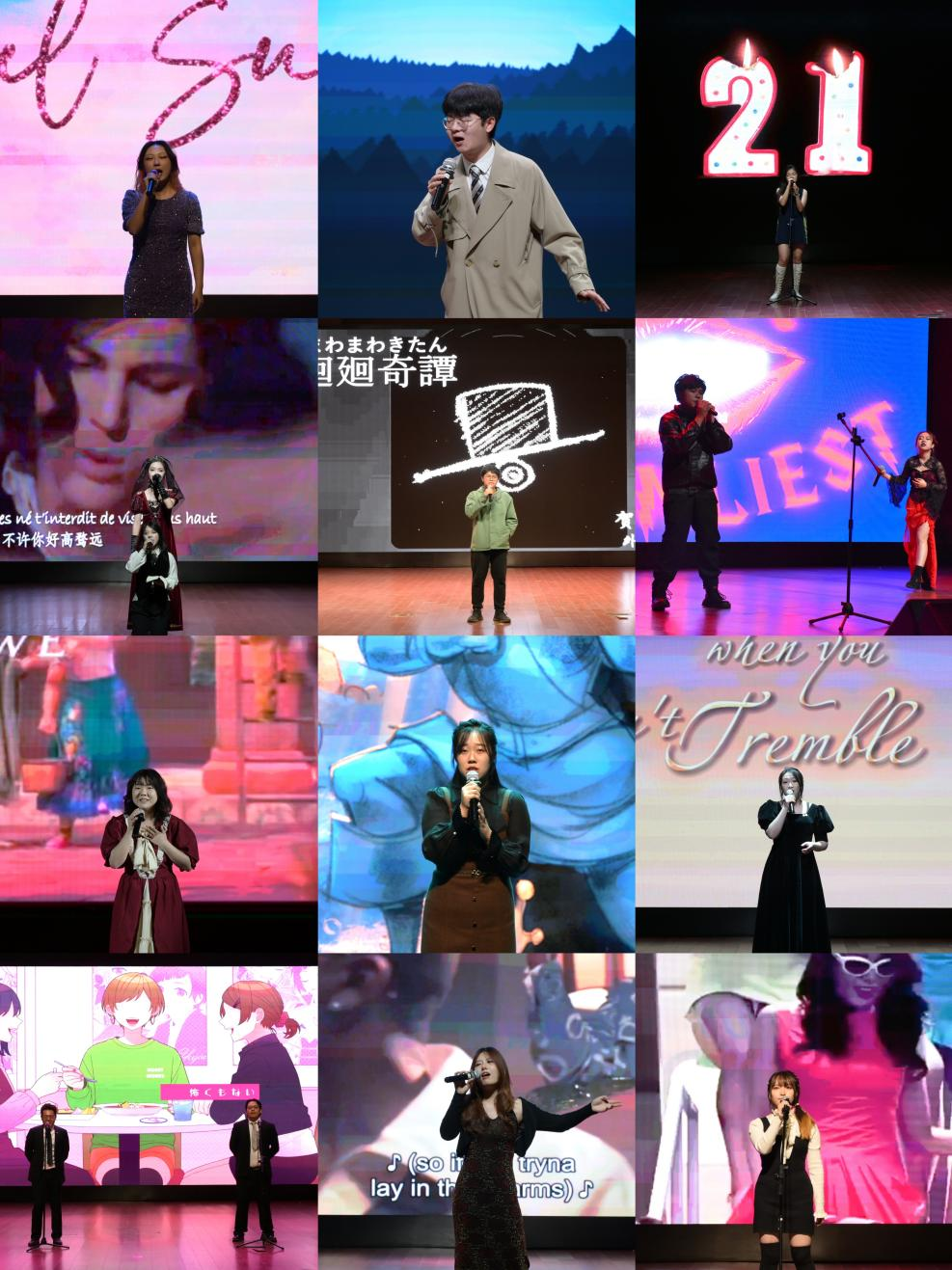 随后,李雨霏霏演唱的《A Million Dreams》告诉我们梦想的可贵与美好,王嘉浩和陈元涛这对组合演唱了《可愛いくてごめん》,二次元和西装的碰撞与反差,使全场气氛热烈。倪紫衿的《Speechless》旋律柔美,但充满力量、深入人心。王茂森的《I Surrender》娓娓道出了人们在爱情中的无奈与坚持。代耀珏的《just the two of us》则以轻盈的节奏表现了恋爱中的甜蜜。