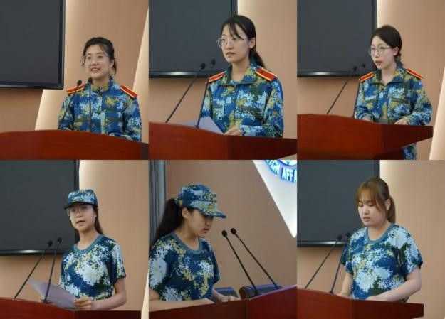随后,崔梓彧、孟诗淼、黄烁棠、周含聪、邵欢及王奕涵六位军训学员代表依次上台分享军训感悟。学员代表们回顾了军训生活的点滴,讲述了自己的成长与收获,并再次坚定了铭记历史荣光、共筑国防基石的信念,深刻的思想感受引起了同学们的共鸣。