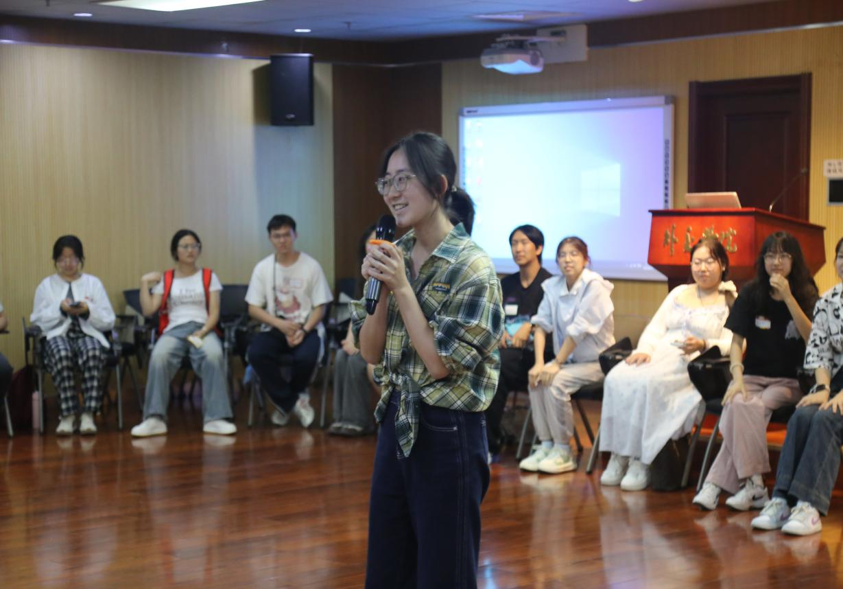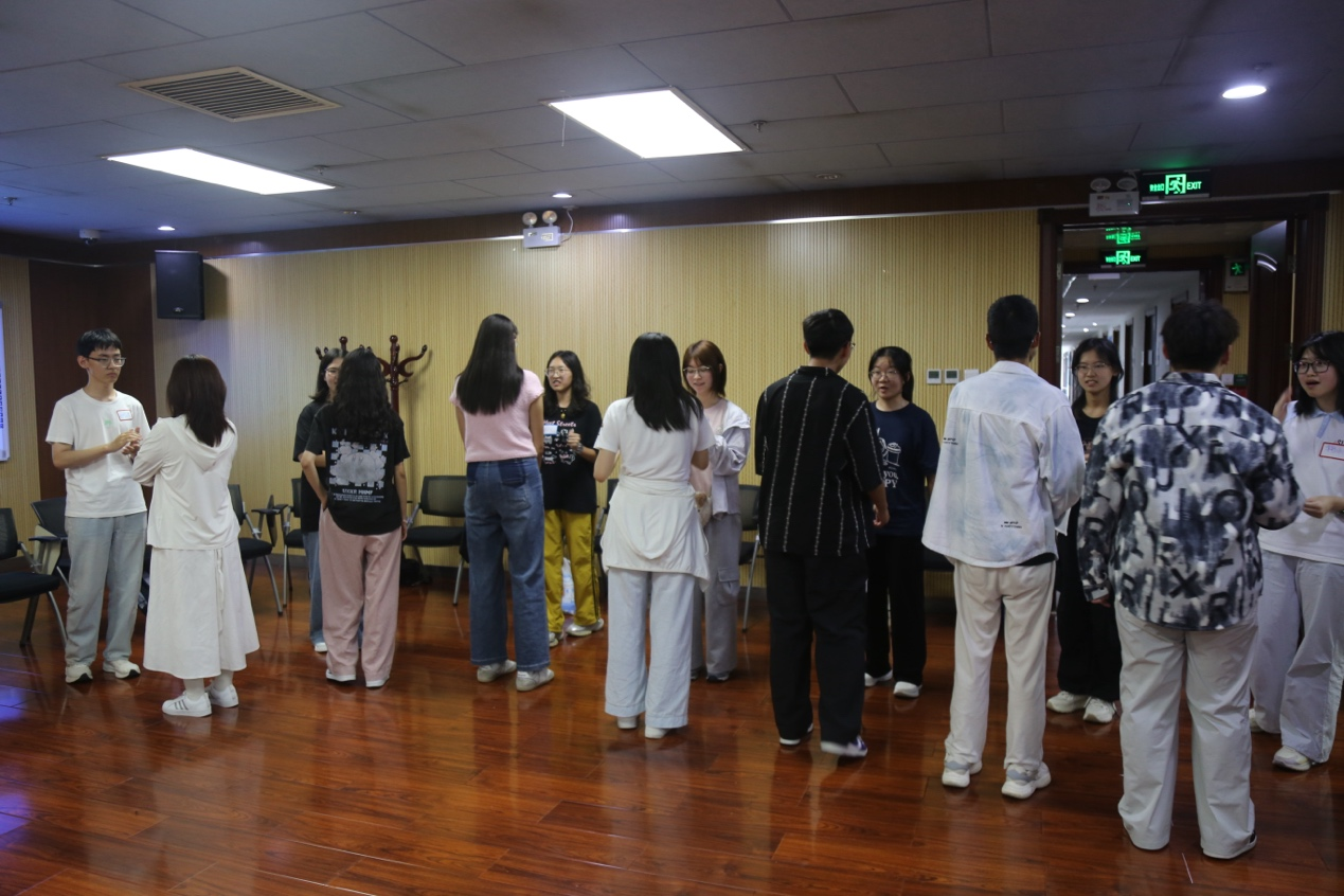 在权老师和吴老师的引导下,同学们将座椅围成一个大圆,迅速进入轻松愉快的活动氛围。“大风吹”“小风吹”游戏率先开展,老师说出某一特征,符合条件者迅速交换座位。未抢到座位的同学则进行自我介绍,现场气氛热烈,欢笑不断,同学们在互动中逐渐放松,展现出真诚的笑容。
