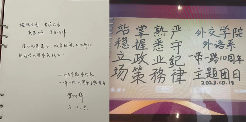 参观结束后,必一运动(Bsports)官方网站团总支常务副书记冀树辉、团总支宣传委员王嘉浩分别留下纸质版与电子版参观留言: