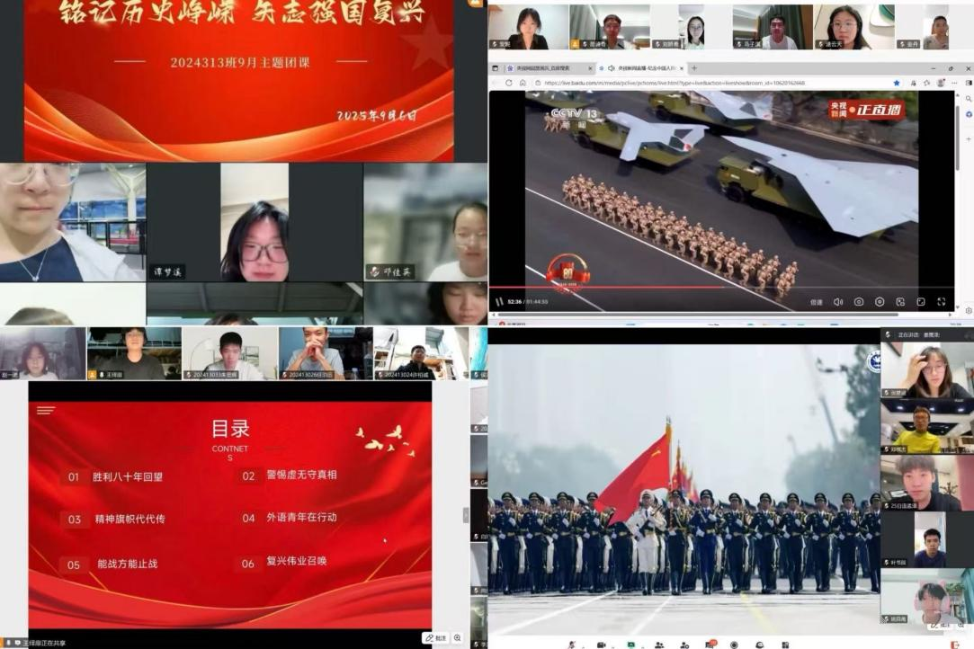 2024312班的许柏诚同学表示,通过学习,我们深刻认识到伟大抗战精神的历史意义与时代价值,更加坚定历史自信,厚植了爱国情怀,并决心坚决反对历史虚无主义,捍卫历史真相。阅兵式展现的国家力量与国防现代化成就,也让我们直观理解了“能战方能止战”的深刻内涵,极大地增强了国家安全观念、民族自豪感与使命担当。作为外语专业学生,大家尤其认识到应立足自身专业优势,将爱国热情转化为实际行动,努力提升跨文化交流能力,未来致力于向世界讲好中国故事、传播中国声音,为增强国家文化软实力、实现中华民族伟大复兴贡献自己的青春力量。