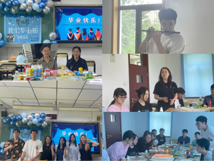 之后,刘辰同学以一曲《亲爱的旅人啊》的笛子演奏表达了对同学们的深情告别。师生们共同吹灭毕业蛋糕上的蜡烛,许下对未来的美好愿望,共享甜蜜的蛋糕,庆祝这一重要时刻。最后,一系列精心设计的游戏环节为毕业欢送会带来了欢声笑语,让毕业生们的大学生活画上了圆满的句号。